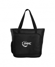 This tote is made of 600D polyester canvas, 360D polyester twisted twill canvas. It features a zippered large main compartment, and has a front zippered pocket with an interior organization panel. It also has over-the-shoulder length web handles. The laptop sleeve dimensions are 13"h x 16"w, and fits most 15" laptops. 16" H x 15.5" W x 6.5" D